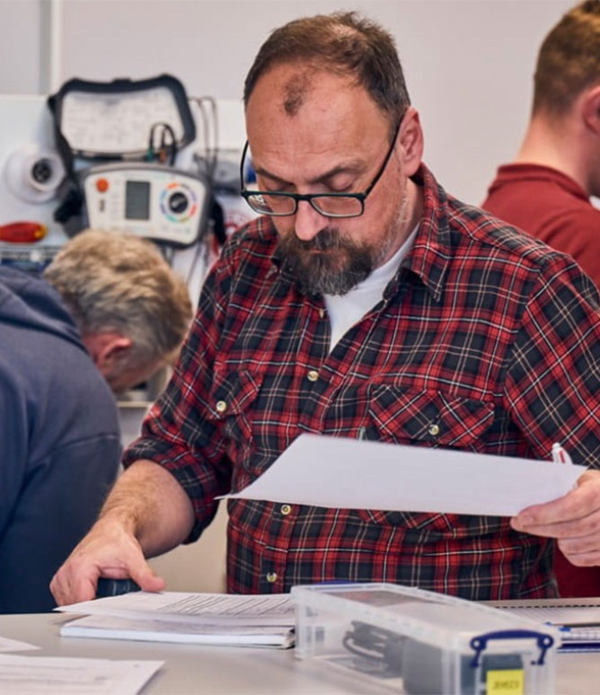 We recommend if you have no electrical knowledge that you familiarise yourself with the book before you come on the course. Ideally, if you read the contents page, glossary, and index and find out what the book covers overall this will help you when you start the course.